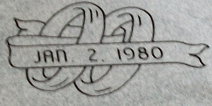 This simple pair of intertwined wedding bands overlapped by a ribbon with room for customization such as shown here with a wedding date engrave into our high quality solid Gray Granite and then enhanced by the addition of a black lithichrome stone paint.