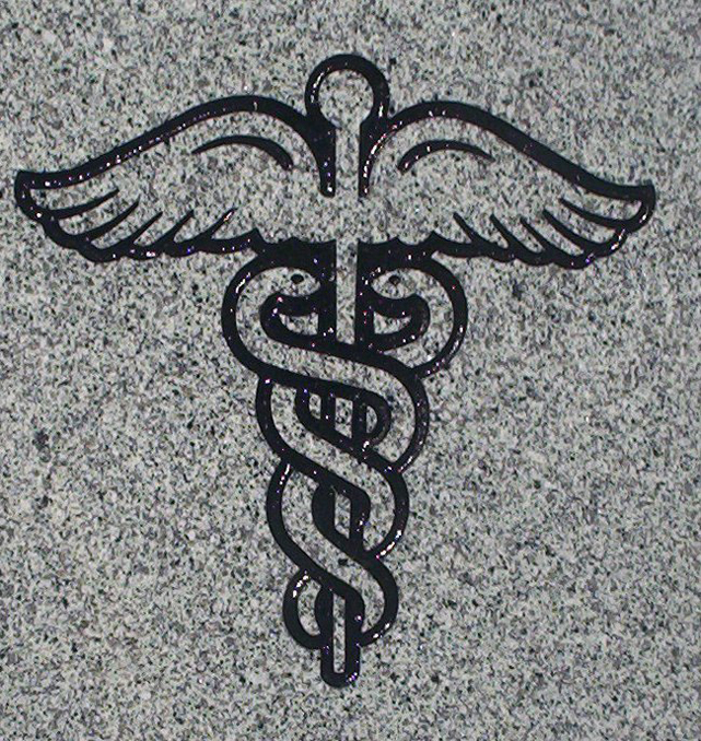This highly recognizable medical symbol is a great way to memorialize a loved one who was in the medical field. Shown here, engraved on our high quality solid Gray Granite and then enhanced by the addition of a black lithichrome stone paint.