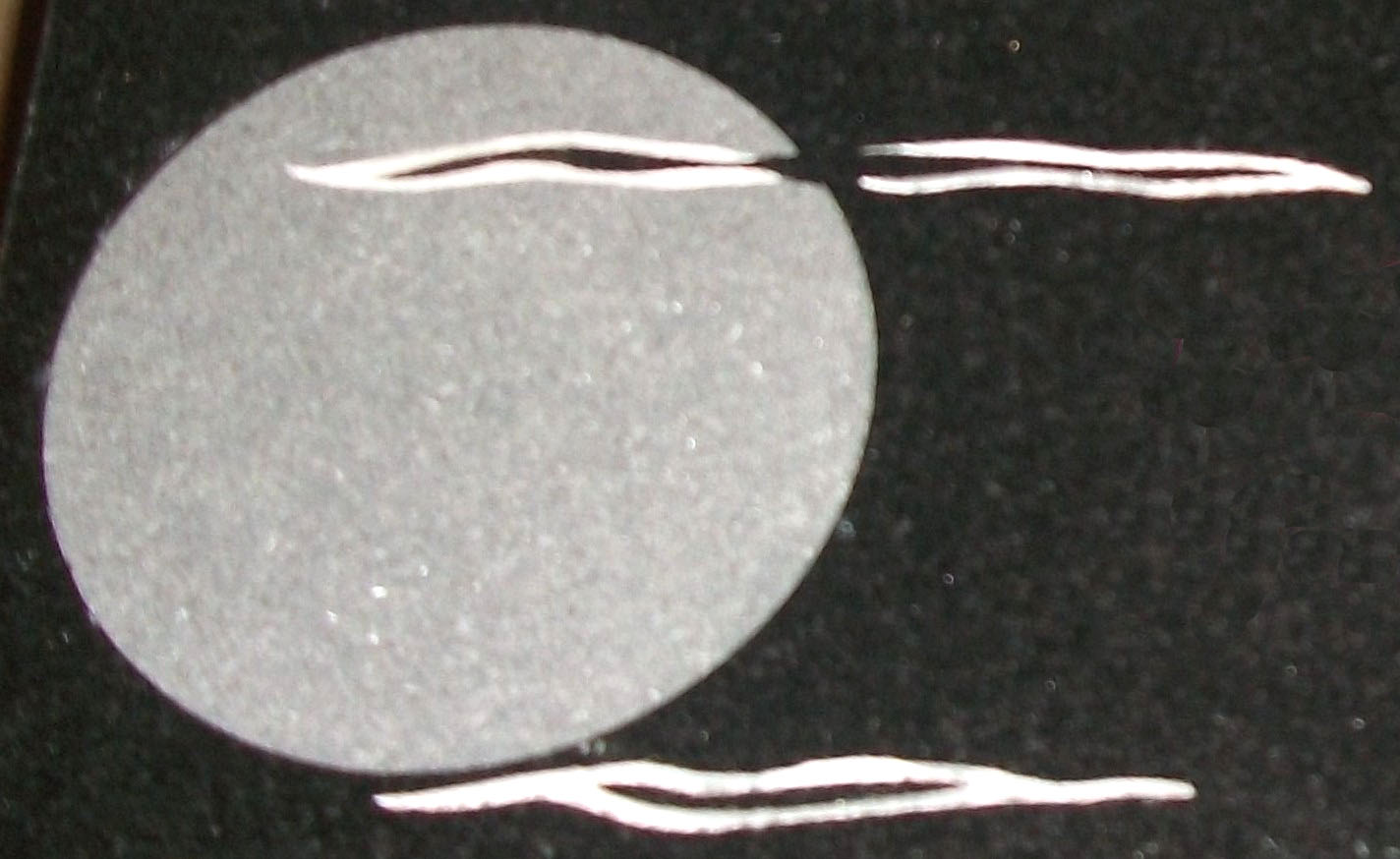 This unique cemetery headstone design features a double processed full moon in a night sky with wisps of clouds floating past. Shown here sandblasted into our high quality solid jet black granite and then enhanced by the addition of a white lithichrome stone paint.