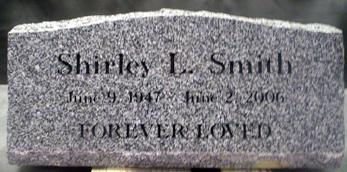 This beautiful 24x6x10 solid granite slant memorial is shown in quarry # G603 with sandblasted characters done in an academy engraved font. The price of this stone includes basic engraving of up to 40 characters. The epitaph "Forever Loved" or a unique epitaph of your design can be added for an additional charge of $2 a character. The stone is shown with a black lithichrome paint added to the characters for emphasis. This is an optional, but free of charge service.