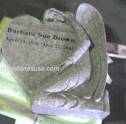 This engraved angel gravestone is pictured in anxi granite. The engraved letters are shown highlighted with black paint. The basic engraving and black paint are included in the price of the gravestone.