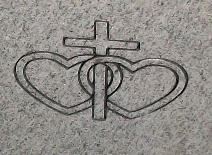 This beautiful and symbolic cemetery headstone design features a pair of interlocking hearts embracing a basic cross design. A great choice for a companion design on any monument you choose. Shown here sandblasted into our high quality solid Gray Granite and then enhanced by the addition of a black lithichrome stone paint.