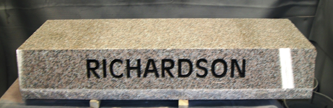 The base of this beautiful high quality solid Anxi granite memorial headstone is polished and provides plenty of room for personalization, as shown here with the surname sandblasted and then enhanced by the addition of a black lithichrome stone paint (also available in white).