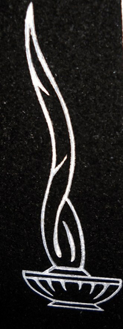 This religious and symbolic cemetery monument design features the Lamp of Knowledge, also known as God's Lamp and is the image of a burning oil lamp shown here on our high quality solid jet black granite enhanced by the addition of a white lithichrome stone paint.