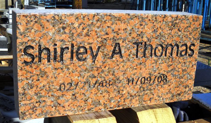 This simple engraved high quality solid Marble Red Headstone is shown with the basic yet traditional name and dates sandblasted and then highlighted by the addition of a black lithichrome stone paint (also available in white).