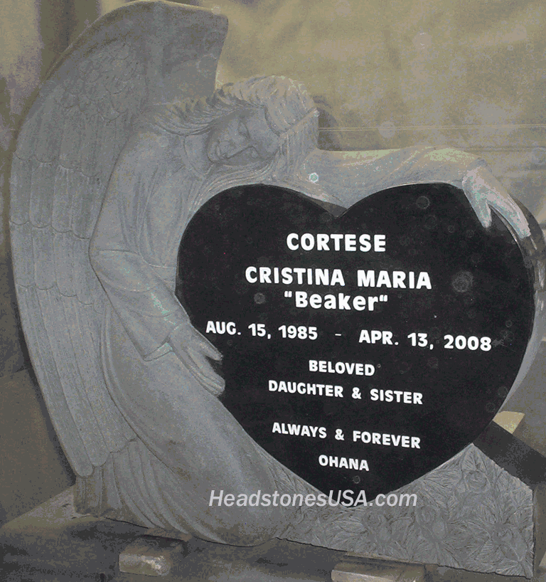 This beautiful angel monument will memorialize your loved one with grace and style. It comes in a variety of colors but is shown here with the optional jet black shanxi granite which is available for an additional charge. The engraved characters are shown highlighted with a white paint which is a free optional service.