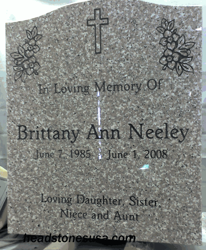 This affordable but peaceful monument is shown with a Worcester Round T.Reg font and sandblasted designs to make the memorial more feminine and graceful. These designs as well as thousands more are available as an optional design for an additional charge. There is no better way to personalize your headstone than to include a design to memorialized your loved as you remember them. For a list of our standard designs click on the link or contact us.