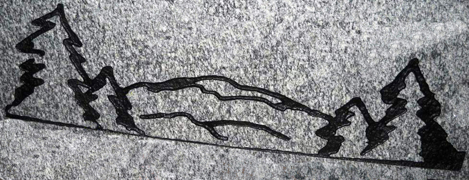 This engraved mountain top view landscape motif is shown engraved on our high quality solid gray granite and enhanced by the addition of a black lithichrome stone paint. This design can be used alone or in combination with our other nature designs such as wildlife or birds and is an excellent way to pay tribute to your life long nature lover while adding a touch of peace and tranquility to the overall design of the cemetery headstone.