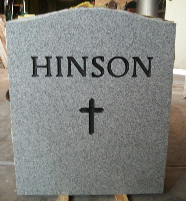 This versatile memorial features both a front and back that are polished which allows for even more personalization. As shown here, the back is engraved with the surname in large bold characters followed by our Cross Cemetery Headstone Design 550 all of which are sandblasted and then enhanced by the addition of a black lithichrome stone paint. For more information on how to customize the perfect tribute to your loved one contact us today for a free consultation.