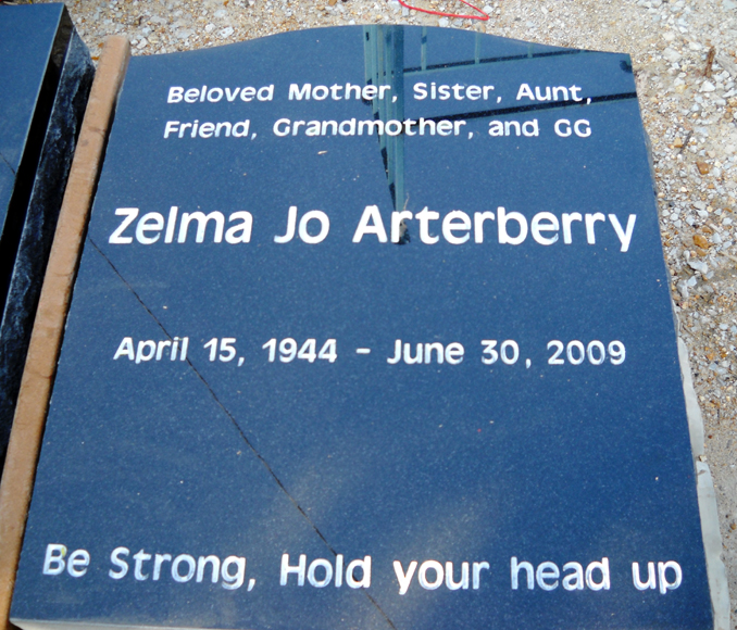 This simple, but beautiful N-02 model Jet Black Cemetery Memorial features the traditional names and dates along with the personal epitaph of "Beloved Mother, Sister, Friend, Grandmother and GG" as well as the inspirational quote "Be Strong, Hold Your Head Up" all sandblasted and then highlighted by the addition of a white lithichrome stone paint.