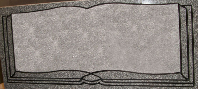 This versatile open book or open bible cemetery headstone design 401 is shown here engraved on our high quality solid Gray Granite and enhanced by the addition of a black lithichrome stone paint. This design can be used as a border or an epitaph box and can be used alone or as a pair for a companion memorial.