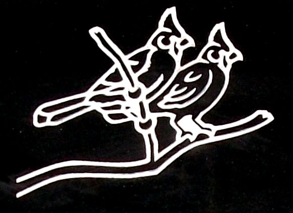 This cemetery headstone design features a pair of Cardinals resting on a branch and is a great choice for use on a companion monument or any nature lover. Shown here sandblasted into our high quality solid jet black granite memorial and then enhanced by the addition of a white lithichrome stone paint.