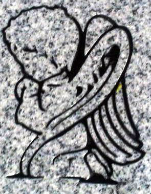 This heartrending cemetery headstone design features a child-like angel knelt with its head bowed and hands clasped in prayer and would be perfect for use on an infant memorial. Shown here sandblasted on our high quality solid Gray granite and then enhanced by the addition of a black lithichrome stone paint.