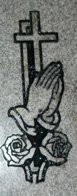 This engraved cemetery headstone design can be used with or without the epitaph or border box as shown here engraved into our high quality solid Gray granite and then enhanced by the addition of a black lithichrome stone paint.