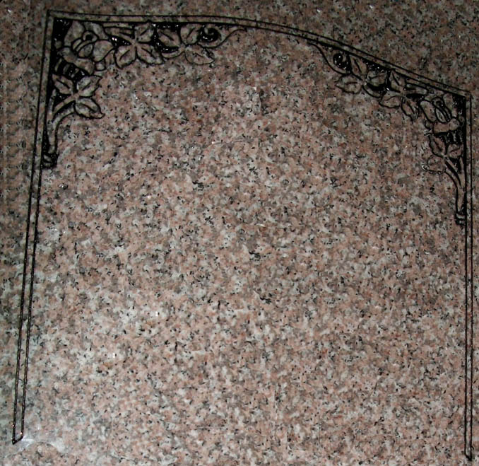 This enchanting rose vine drape style border cemetery headstone design is shown her sandblasted into our high quality solid Anxi granite and then enhanced by the addition of a black lithichrome stone paint.
