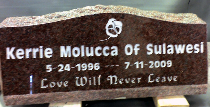 This unique tombstone is shown with a pansy adorning the top of the epitaph with the name and dates sandblasted into an antique olive bold font, while a loving memorial is engraved into a free hand style. This headstone is a perfect example of ways we can customize a monument to your exact specifications. We also offer services such as ceramic photos or laser etching to further personalize the cemetery marker you select. Click on the links to see the wide variety of accessories we have available.