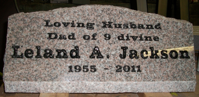 This tribute to a "Loving Husband and Dad of 9 Divine" features the traditional name and years sandblasted into our high quality solid Anxi Granite and then enhanced by the addition of a black lithichrome stone paint.
