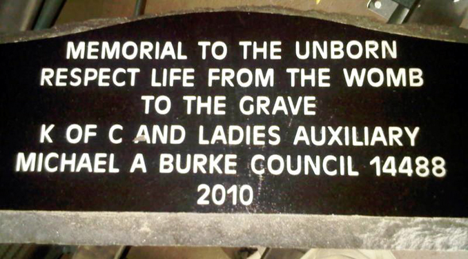 This high quality solid jet black SP7 slant style monument is shown here designed for use as a Pro-life memorial to the unborn children and to remind others to respect life and is shown with the engraving enhanced by the addition of a white lithichrome stone paint.