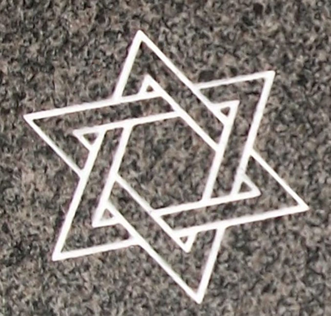 This traditional Jewish symbol is known as the Star of David and is shown here sandblasted on to our high quality solid G654 Dark Gray Granite and then enhanced by the addition of a white lithichrome stone paint.