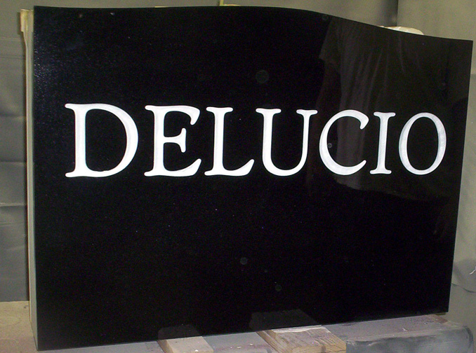 The back side of this exquisite memorial is shown completed with a worcester round t reg font and highlighted with a white lithichrome stone paint. The Surname looks remarkable and really grabs the attention.