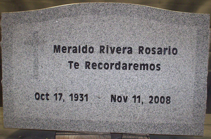 This beautifully simplistic monument features a stenciled cross design and a basic Spanish epitaph completed in an antique olive bold font highlighted by a black lithichrome stone paint. A great addition to this memorial would be a solid granite vase. To view our selection follow the link or contact us with any questions or concerns.