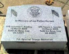 This patriotic military memorial is designed to honor the fallen soldiers of the 7th special troops battalion. The American Flags adorning each corner and the American Government Seal gracing the center symbolizes the gratefulness of this nation to the dedication and sacrifice of the armed forces to protecting our Nation and our freedoms. This memorial showcases the versatility of our stones and our ability to customize each monument to your specific needs and design requests.
