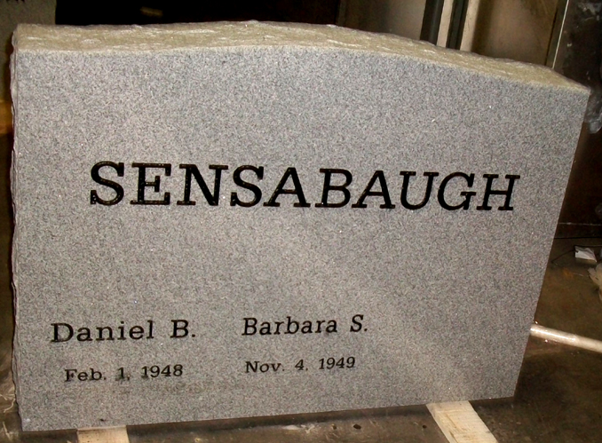 This versatile memorial is large enough to be used for a single tribute, a companion monument, or even as a family memorial as shown here with two names engraved and space left for a third in our high quality solid Gray granite and then enhanced by the addition of a black lithichrome stone paint.