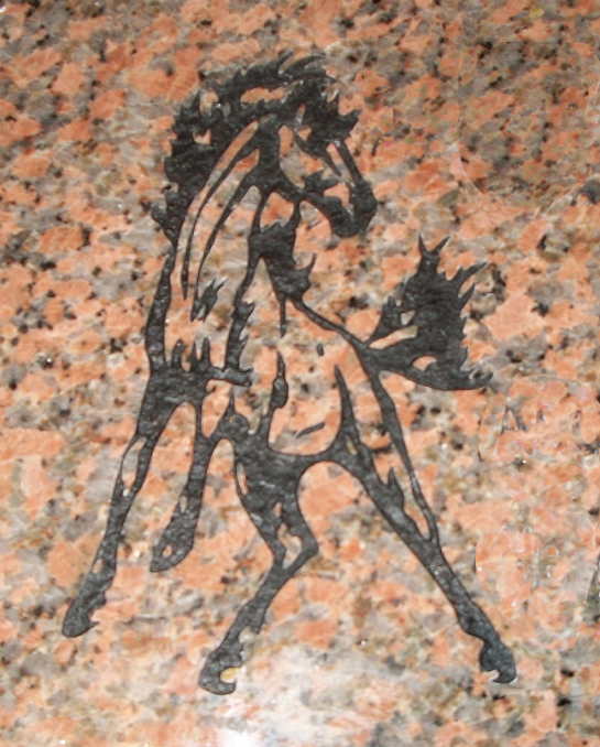 This beautiful mustang cemetery headstone design evokes feelings of wildness and freedom and is shown here engraved on our high quality solid Marble Red granite then highlighted by the addition of a black lithichrome stone paint.