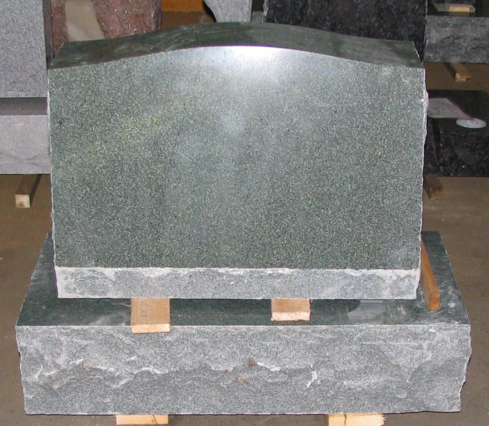 This grave memorial slant is shown in evergreen granite with a rock cut base.