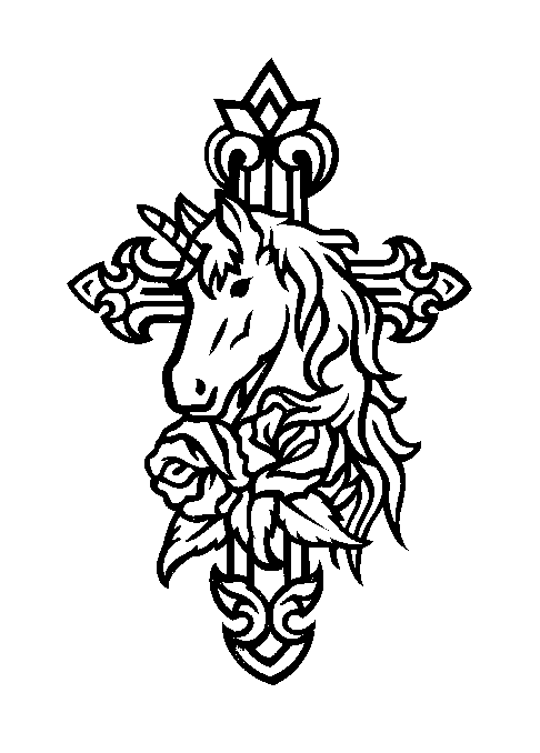 Animal Headstone Design 391--Unicorn, Cross, Rose