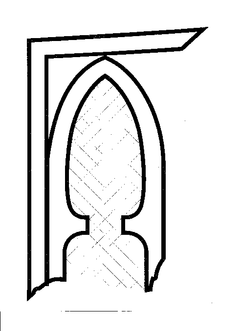This cemetery monument complete design features a border that encases the entire marker and has a single Gothic style window in the upper left-hand corner.