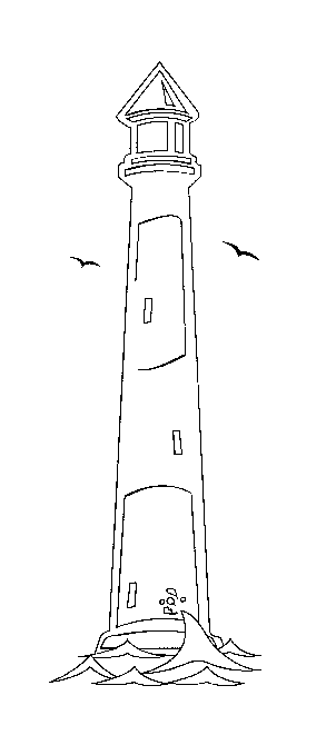 This cemetery monument design features a lighthouse on the coast surrounded by choppy waves and sea gulls.