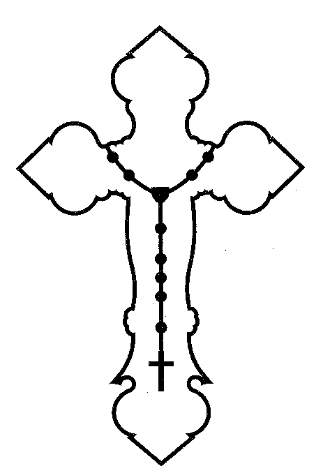 This unique cemetery monument design features an unusual and beautiful cross design draped with a rosary.