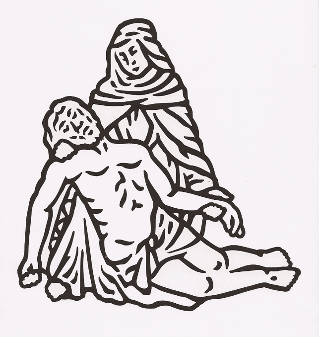 This heart-breaking image of Mary mourning Jesus is a one of Michelangelo's most famous works and is sandblasted here on our high quality solid jet black granite and then enhanced by the addition of a white lithichrome stone paint. A great choice for the memorial of any beloved son or loving mother. |