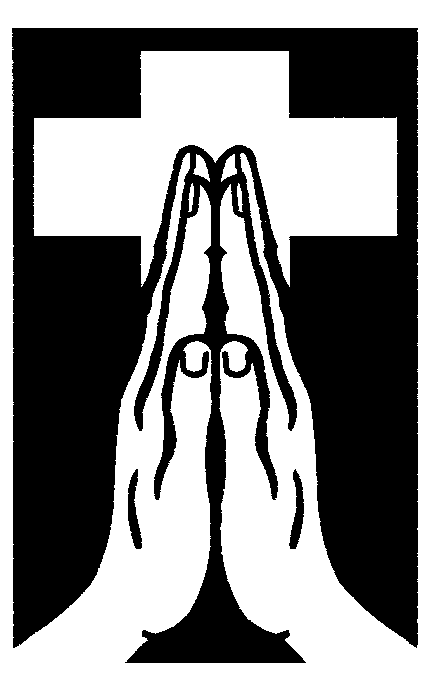 This cemetery monument design features a pair of detailed praying hands superimposed over a basic cross.