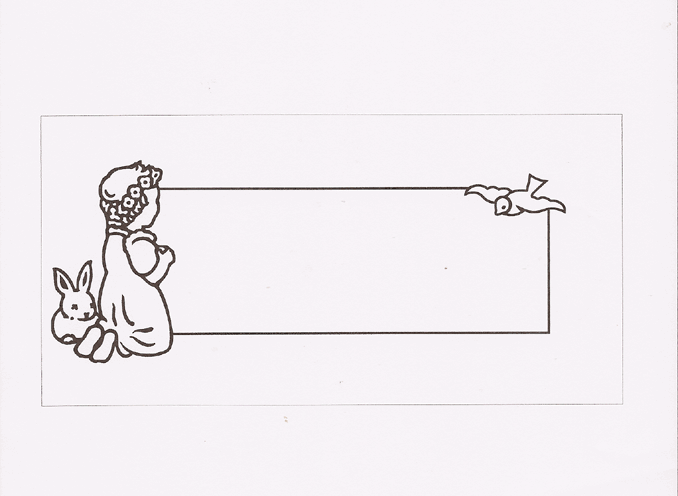 This cemetery memorial motif features a small girl kneeling down with a flower garland in her hair, a bunny at her feet in lower left and a baby bird in flight in the upper right. A great design for use on a juvenile memorial or someone who is simply young at heart.