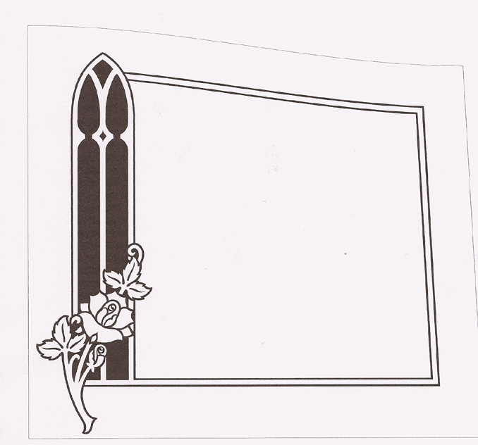 This cemetery memorial motif features a basic double outline border adorned on the left hand side with a Gothic style Cathedral Window and a single rose.