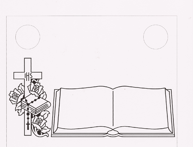 Memorial Headstone Design 1765--"IHS" Cross with Roses, Rosary, Bible, and Open Book Epitaph Box