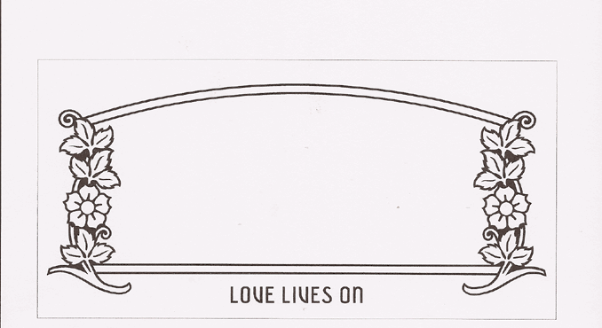 This charming cemetery memorial motif features a rounded top epitaph box enhanced on each side by a wildflower garland and the phrase "Love Lives On" at the bottom.