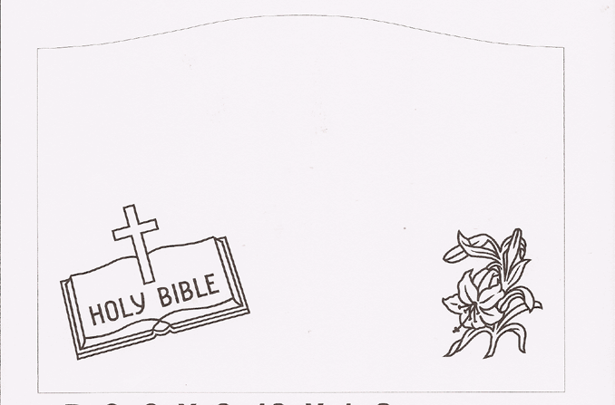 This religious cemetery memorial motif features three traditional symbols of Christianity. In the lower left rest an open Holy Bible and a basic cross and in the lower right a blooming lily of the valley is growing. A popular hymn refers to Jesus as the Lily of the Valley as it says, "He’s the Lily of the Valley, the Bright and Morning Star,He’s the fairest of ten thousand to my soul" making this the perfect tribute to your devout loved one.