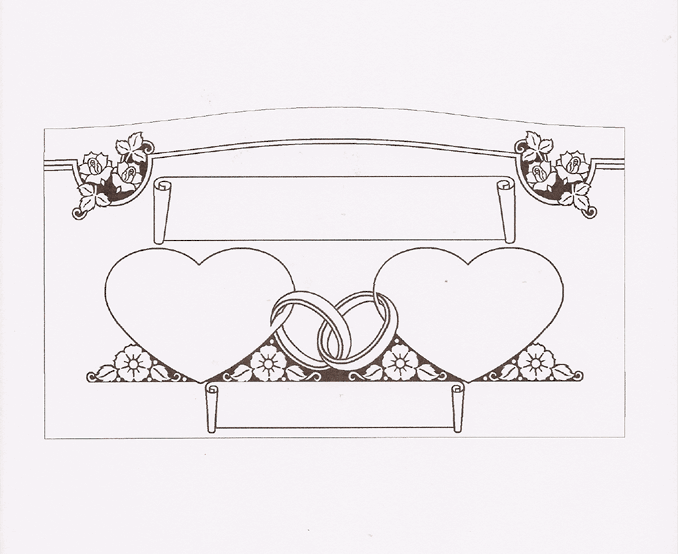 This intricately detailed companion design is so inclusive that there is no need to search for other designs. It features a pair of interlocked wedding bands perfect to hold an engraved wedding date, heart shaped epitaph boxes to show the eternal love and devotion along with scroll style banners for a custom epitaph and or a surname, completed by the flowers in each upper corner and accentuating the heart epitaph boxes shown here sandblasted on to our stunning high quality solid Blue Pearl Granite and then enhanced by the addition of a white lithichrome stone paint. |