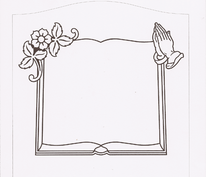 This religious themed cemetery memorial motif features a large open bible style border box with plenty of room for personalization adorned on the upper left hand corner by a wild rose vine and in the upper right hand corner a pair of praying hands. This motif reminds us of God's grace and illustrates the bible verse found in Ephesians 2:8-9 and says, "For by grace you have been saved through faith. And this is not your own doing; it is the gift of God, not a result of works, so that no one may boast".