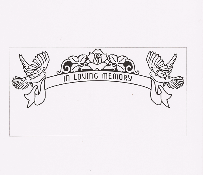 This cemetery memorial motif features a pair of doves in flight holding a banner that reads "In Loving Memory" adorned on the top with a rose garland. A great design for use on a companion or individual monument.