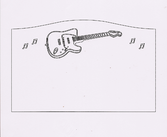 This musically themed cemetery headstone design features an electric guitar surrounded by four music notes and is an excellent choice for any guitar player or music lover. Shown here sandblasted on to our high quality solid Jet Black Granite and then enhanced by the addition of a white lithichrome stone paint. |