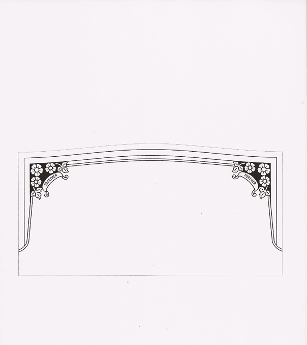 This cemetery memorial motif features a drape style border. In each corner is a wildflower garland and a ribbon. In the left hand corner the ribbon reads, "Together" and in the right hand corner the ribbon reads,"Forever". A great quote that could be paired with this romantic design is "True Love Stories Never End".