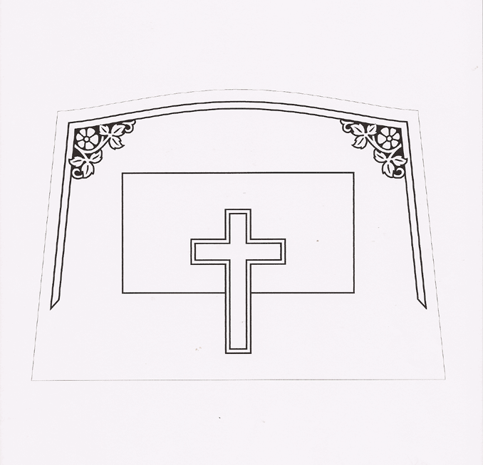 This religious cemetery memorial motif features a drape style border that adorns the top of the monument and extends down each side complete with a wild flower vine in each corner. The design also features a double outline cross in the center of a basic epitaph box. A bible verse that can be paired with this motif is found in Psalm 119:28 and says, "My soul is weary with sorrow: strengthen me according to your word".