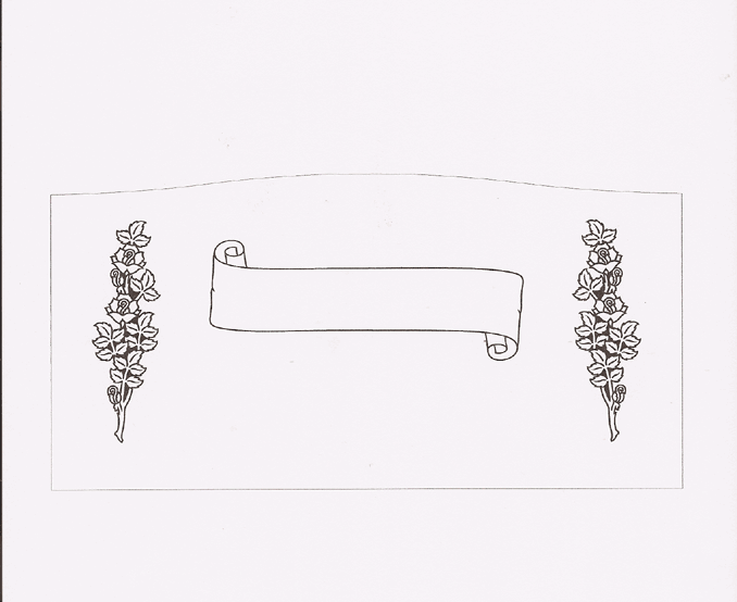 This absolutely stunning cemetery memorial motif features a scroll style banner in the center of the monument adorned on each side by a long stemmed rose bouquet and is the perfect choice to pay tribute to the love of your life. A great quote that can be paired with this design says, “...when the time comes to embrace for one long last while, we can laugh about how time really flies, we won't say goodbye, cause true love never dies".