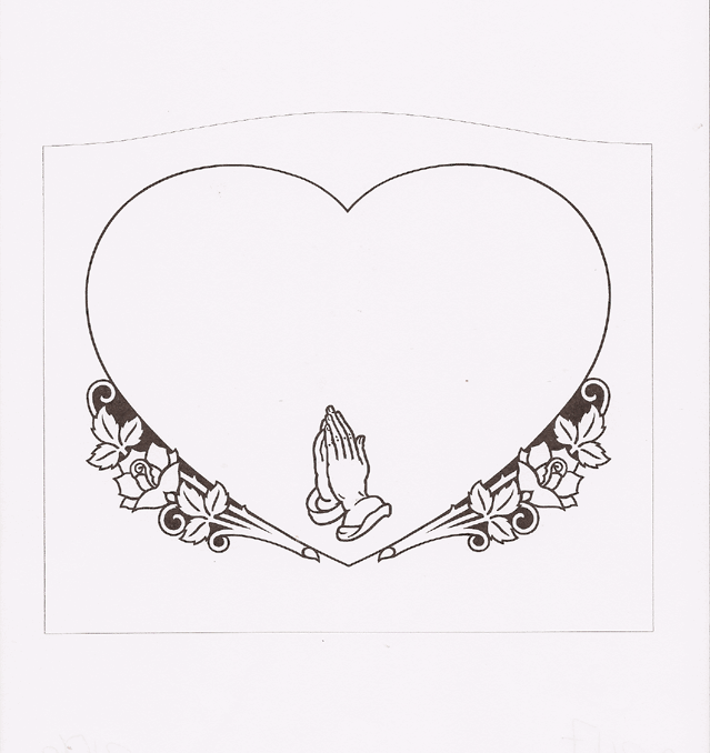 This religious theme cemetery memorial features a heart shaped epitaph box adorned inside at the bottom center by a pair of praying hands and graced on the outside by two long stemmed roses. A great way to show your loved ones dedication to God and their faith. A great bible verse that could be paired with this design is found in Phillipians 4:7 "And the peace of God, which transcends all understanding, will guard your hearts and your minds in Christ Jesus".
