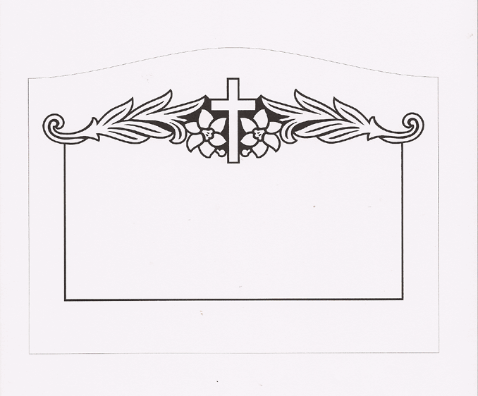 This beautiful cemetery memorial motif features a border box that is completed at the top by a lily swag and a basic cross. The lilies represent a pure life devoted to God and the hope of eternal life through Jesus's ultimate sacrifice on the cross. It reminds us of the bible verse found in John 11:25-26 that says, "I am the resurrection and the life. He who believes in me will live, even though he dies; and whoever lives and believes in me will never die.