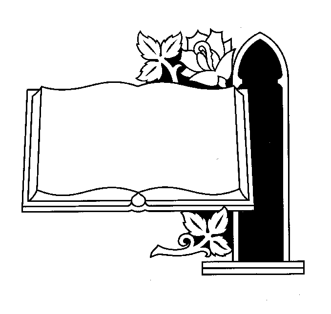 This cemetery memorial motif features an open bible epitaph box adorned on the right side by a rose garland and a Gothic style Cathedral window.